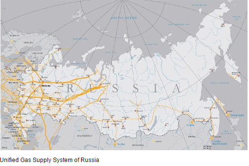 All of Russia’s natural gas production is delivered into gas trunk lines integrated in the Unified Gas Supply System (UGSS) of Russia, which is owned by Gazprom. The UGSS is considered to be the world’s largest gas transmission system and it insures continuous gas supply from the wellhead to the final consumer. It represents a unique engineering complex encompassing gas production, processing, distribution facilities, transmission and storage.