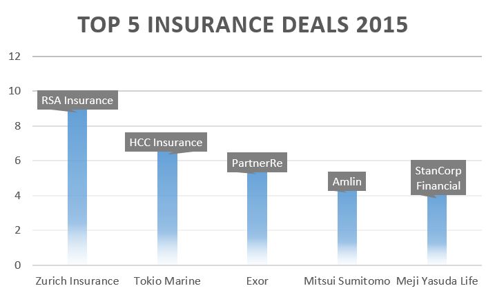 Other top deals involving Japanese firms include: the acquisition of Symetra Financial Corp by Sumitomo Life Insurance, the acquisition of StanCorp Financial by Meiji Yasuda Life Insurance and the acquisition of HCC Insurance Holdings by Tokio Marine Holdings.