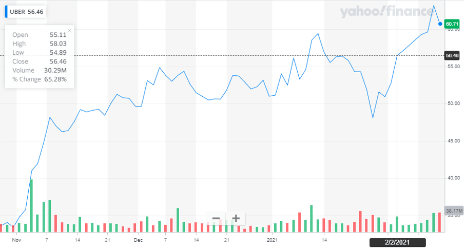 The friendly takeover is viewed in a positive light by Uber’s investors. This is demonstrated by the 9.05% jump in Uber’s share price, from announcement day to 11th of February.