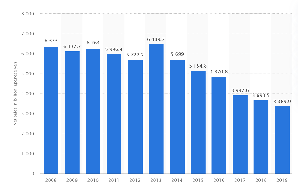 In 2015 Toshiba had to face a debilitating accounting scandal, followed by the bankruptcy of its nuclear power division, Westinghouse, in 2017. Those events had an impact on the company’s reputation and sales, leading to sell off multiple divisions (such as the medical devices business, ultrasound X-ray equipment)