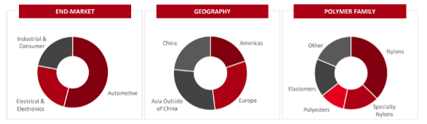 The Mobility & Materials (M&M) product line of Dupont is quite diverse and its main competitors are other diversified chemical conglomerates such as BASF, Celanese, EMS Chemie, Henkel, and Mitsubishi.