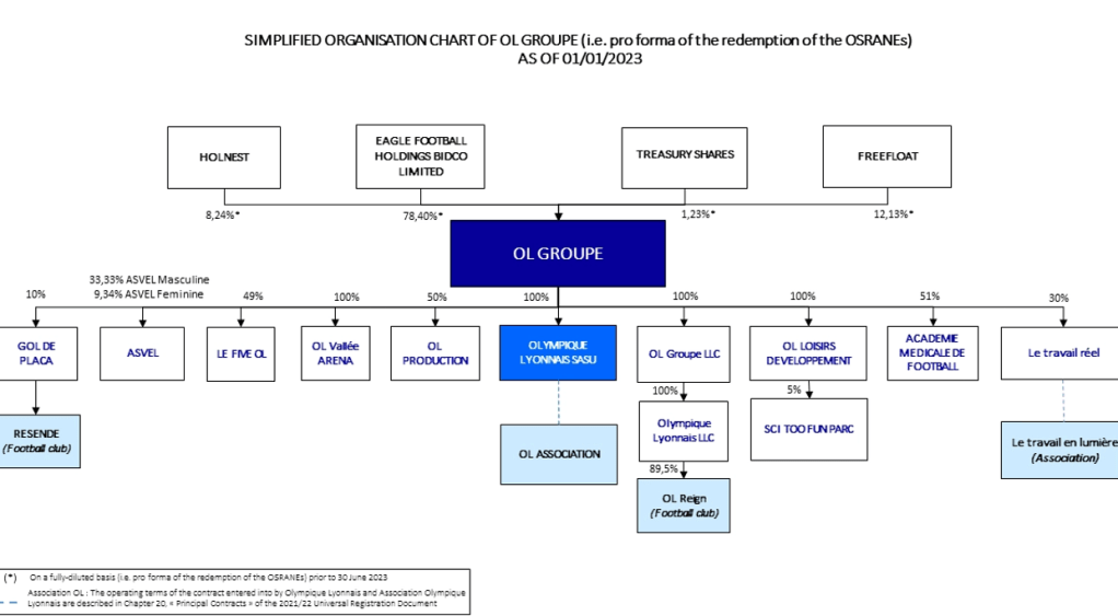 Alongside the acquisition, an agreement was reached for a separate capital increase of €86 million, which was approved by the shareholders’ general meeting on July 29th, 2022, and implemented by the Board of Directors on December 19th, 2022. With this capital increase, Eagle Football now owns 77.49% of the share capital of Olympique Lyonnais Group on a non-diluted basis (78.40% on a fully diluted basis).