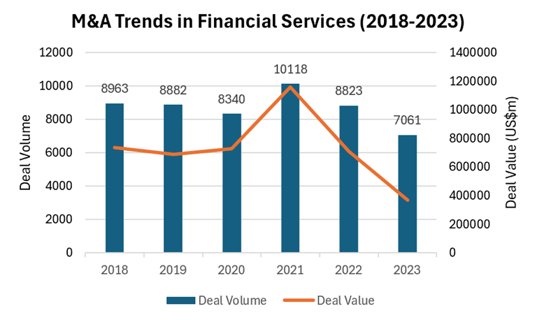 More generally, moving to the global financial institution sector, 2023 was the worst bear market in a decade. In 2023 the deal volume and even more the deal value of M&A operations registered an important decrease that foster the negative trend began in 2021.