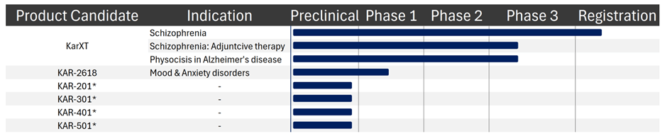 Data: Karuna’s Corporate Site; *Indication for these drugs is undisclosed