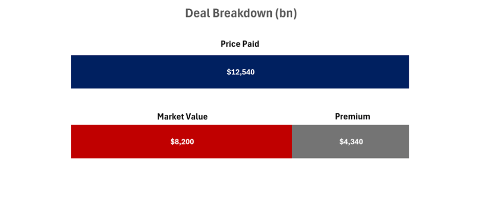 Bristol Myers Squibb has agreed to acquire all outstanding shares, 38 million common stocks of Karuna Therapeutics at $330 per share in cash, a roughly 53% premium to its closing price on Dec. 21, 2023. This deal, amounting to approximately $14.0 billion in total equity value, was approved by the boards of both companies. The share price of Karuna Therapeutics has increased by $102 after the announcement. The acquisition has been financed primarily through new debt and is expected to close in the first half of 2024.