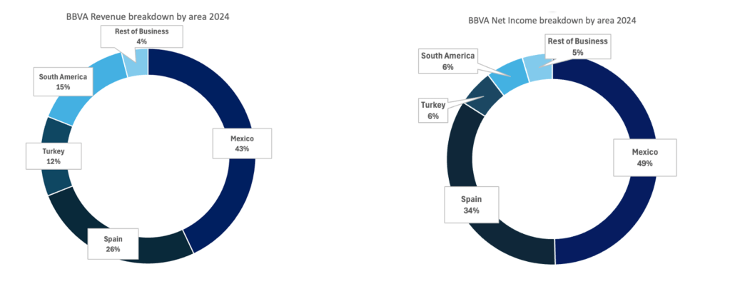 Indeed, BBVA plays a significant role in the Spanish and the Mexican markets, representing 69% of the total revenues and 84.1% of net attributable profits for 2024.