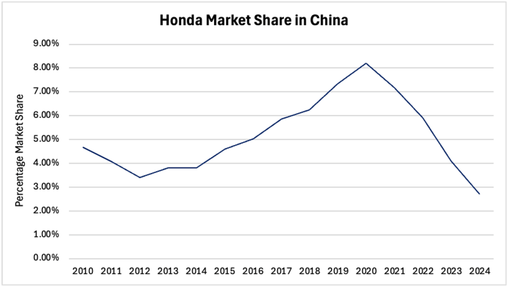 A significant financial challenge for Honda at present is its declining performance in the Chinese market. Staying competitive in China has become increasingly costly, particularly in the EV segment, where both local and American automakers are gaining significant market share. Honda has struggled to keep up with competitors such as BYD, Tesla, and Toyota in the development of hybrids and EVs. The ongoing loss of market share in China, which has been steadily falling since 2020, underscores the need for Honda to reassess and update its approach to this key market.